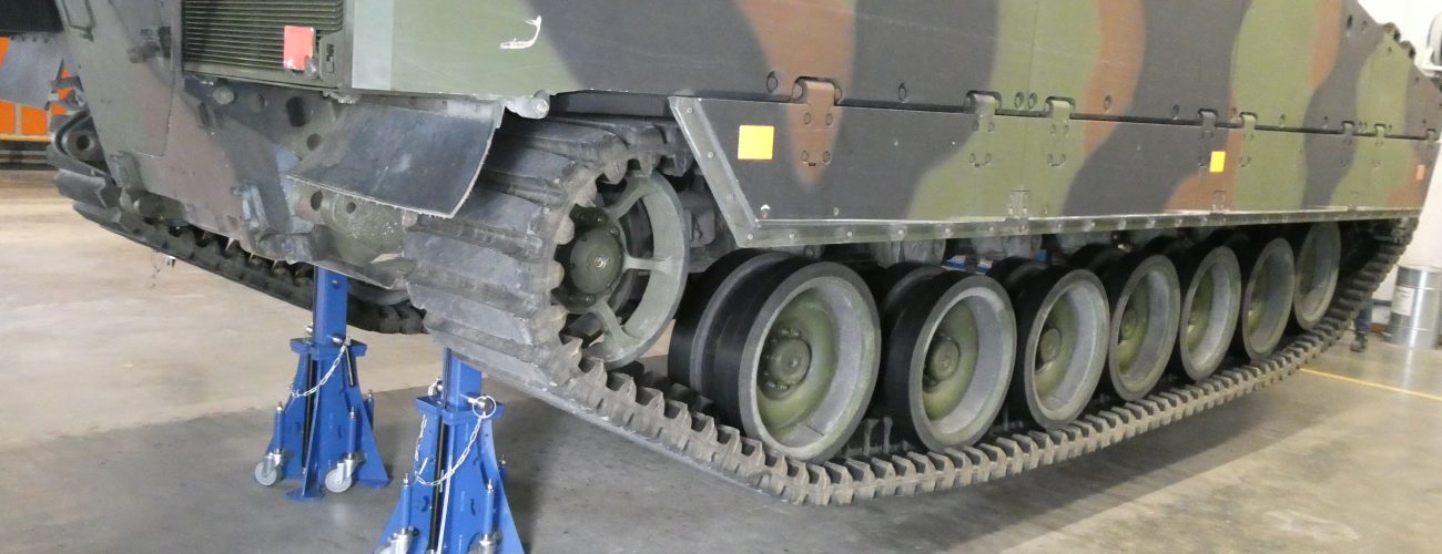 Die Unterstellböcke sind mit einer selbsthemmenden Trapezgewindespindel ausgestattet. Die Trapezgewindespindel ermöglicht eine reibungslose Höhenverstellung. Die Unterstellböcke verfügen außerdem über anpassbare Aufsatzplatten und Höhen von 310 mm bis 2200 mm.